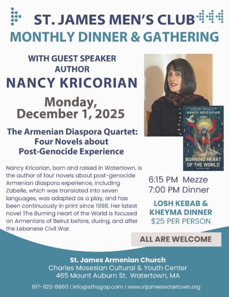 St. James Men’s Club Monthly Dinner: Nancy Kricorian on The Armenian Diaspora Quartet